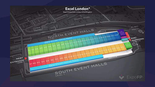 Below I have attached a basic map showing the ExCel layout so you can familiarise yourself before you attend:
